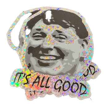 Stagehands, techs, and fans of legendary optimism — this one’s for you. Introducing the Twinkle Mills sticker: a holographic, sparkle-covered tribute to the one and only Gerard Mills and his iconic catchphrase — “It’s All Good.”